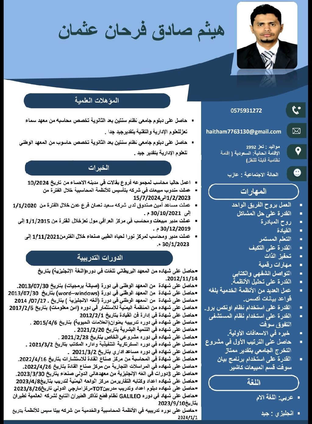 ابحث عن عمل محاسب امتلك تخصص محاسبه + حاسوب عملت على أكثر من نظام محاسبي ولدي خبرات متنوعه كا محاسب وغيرهاء موضحا بالتفصيل الخبرات والمهارات والدورات في السيفي المرفق كاصوره