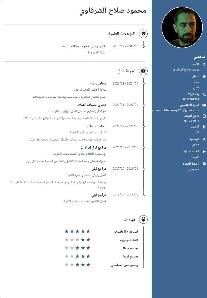 محاسب مصري مقيم في جدة تبحث عن فرصة عمل مرفق صورة من السيرة الذاتية الخاصة بي خبرة في الفنادق والشركات التجارية