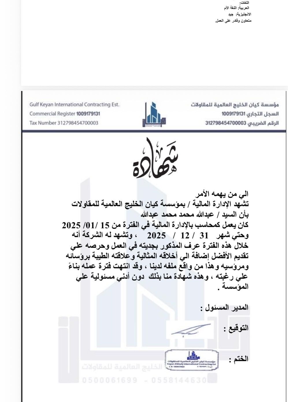 محاسب خبرة 4 سنوات متواجد في الرياض إقامة سارية