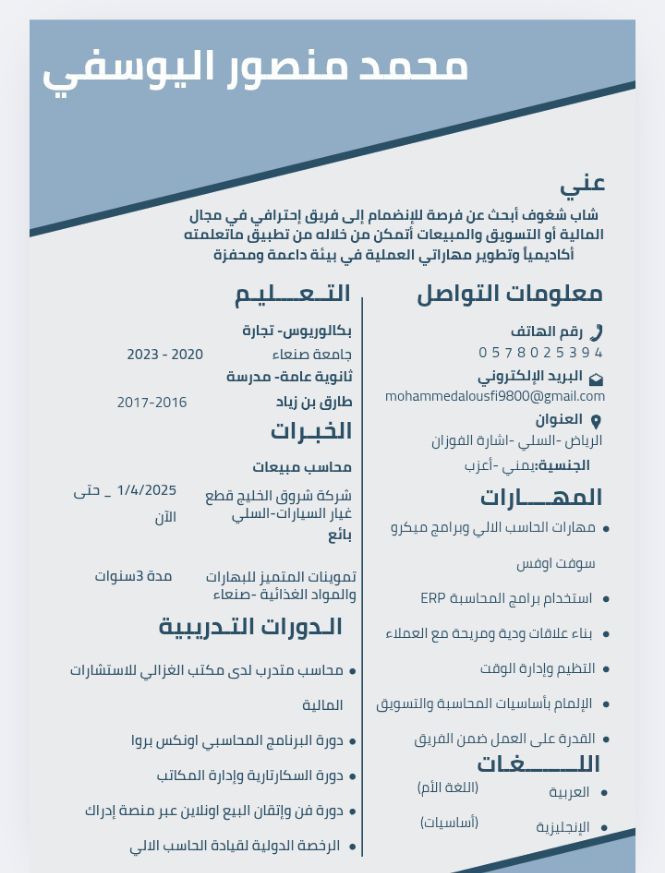باحث عن فرصة عمل وظيفة محاسب أو مدخل بيانات