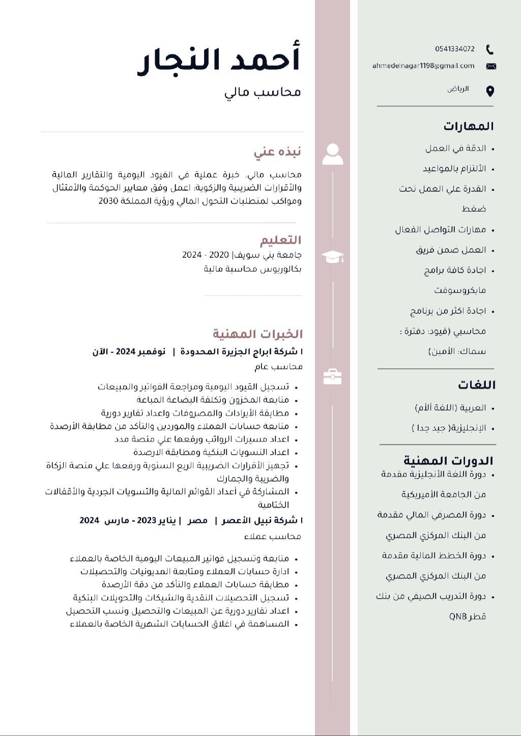 محاسب مصري خبرة عامين لدي القدرة على التعامل مع كافة البرامج المحاسبية وبرامج الأوفيس واعداد التقارير المالية والتسويات البنكية ومسيرات الرواتب ومتابعة العملاء والموردين ومتابعة المخزون وتقارير ضريبة القيمة المضافة وسبق لي العمل علي اعداد الميزانية ولدي خبرة في مجال شركات الرخام والجرانيت وفي الشركات التجارية