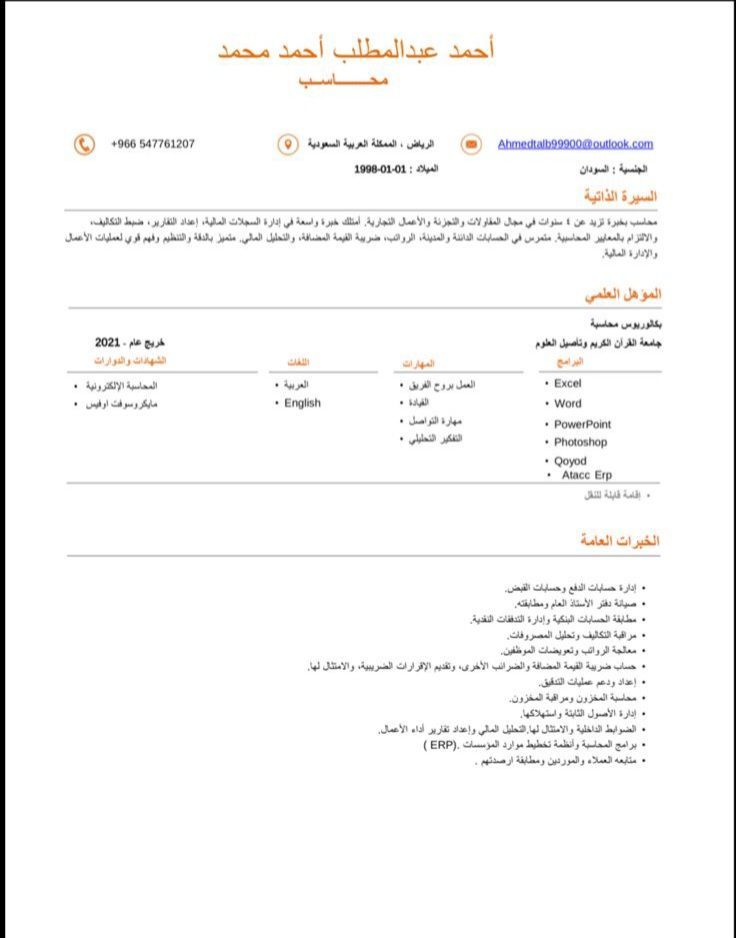 محاسب بخبرة 4 أعوام إدارة الحسابات واعداد التقارير الماليه واتقان برامج المايكروسوفت أوفيس وبرامج ERP ابحث عن فرصة عمل مناسبة لتطوير مهاراتي