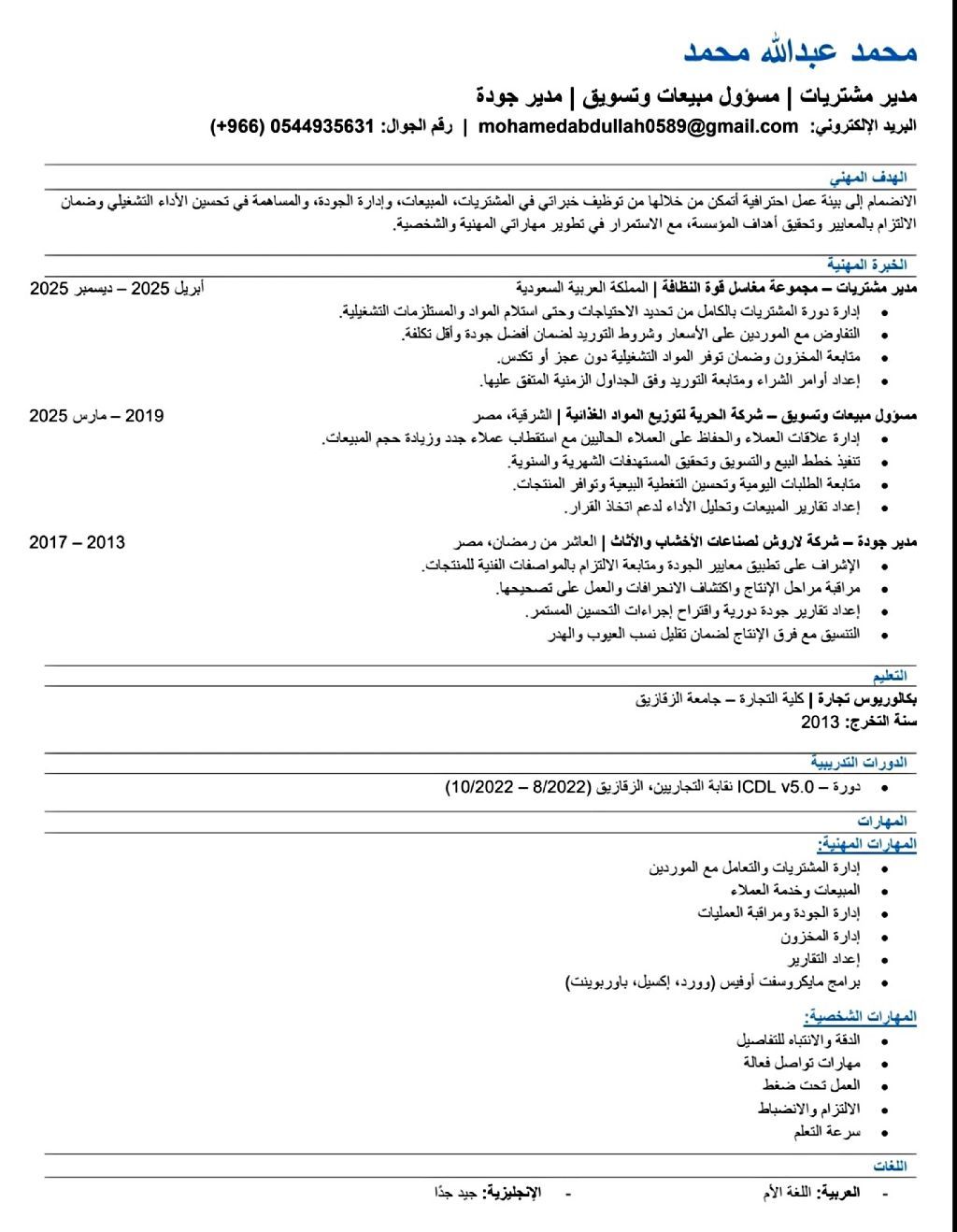 مصري حاصل على بكالوريوس تجارة مقيم في الرياض
