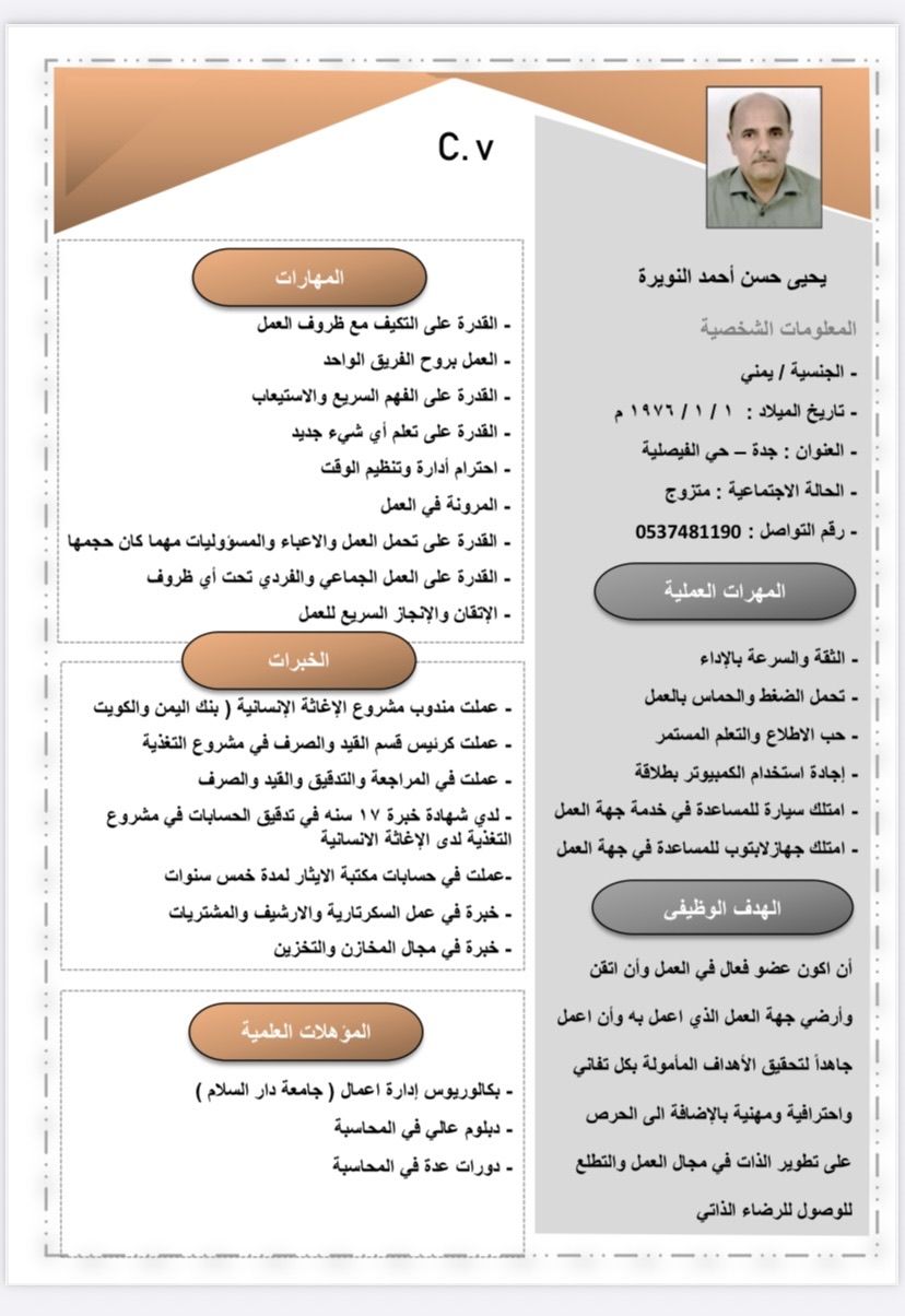 محاسب ابحث عن العمل والتفاصيل كاملة في السي في كما هو موضح ب الصورة