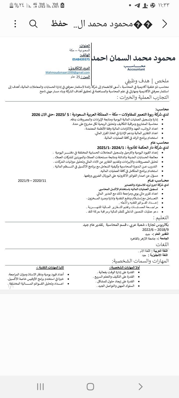 محاسب مصري خبرة 2 - 3 سنوات موجود داخل السعودية خبرة في اعداد القيود اليومية وتسجيل المصروفات والايرادات وجرد المخزون وتصفية العهد ومتابعة العملاء والموردين