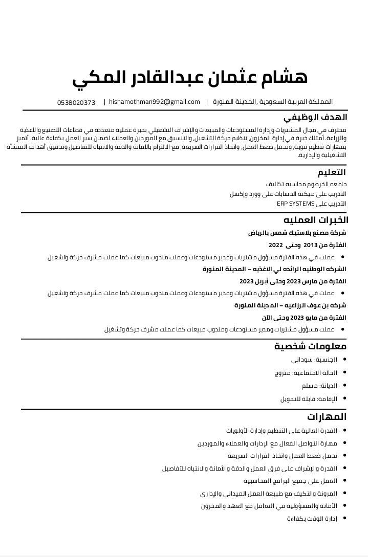 أمين مستودع وملم بادارة سلاسل الإمداد والعمل اللوجيستي