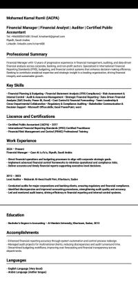 محاسب محترف ومدقق حسابات سوداني حاصل على زمالة (IACPA) بخبرة كبيرة. محترف في الحسابات ادارة كاملة للدورة المحاسبية من القيود حتى القوائم المالية، مطابقة البنوك والحسابات، ضبط العملاء والموردين متابعة الأصول والإهلاك، اعداد تقارير شهرية دقيقة والتزام تام بأنظمة الزكاة وVAT والأنظمة السعودية. متمكن في دراسة الجدوى خبرة في مكاتب المراجعة والتدقيق وبالمقاولات والعقار المقاهي والفنادق. جاهز للعمل فورا