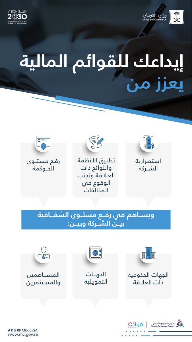 محاسب قانوني ننوه الى بدء موسم ايداع القوائم المالية وتقديم الاقرار الزكوي هل شركتك جاهزة لرفع القوائم المالية وتقديم الاقرار الزكوي في الوقت المحدد تبقي شهر واحد فقط على انتهاء المهلة ب اعداد القوائم المالية واعداد إيضاحات القوائم المالية وفق المتطلبات النظامية ورفع القوائم عبر برنامج قوائم وزارة التجارة بادر بتسليم القوائم المالية بمهنية لحفظ حقوق منشأتك وتقديمها في الوقت المحدد نظاميا
