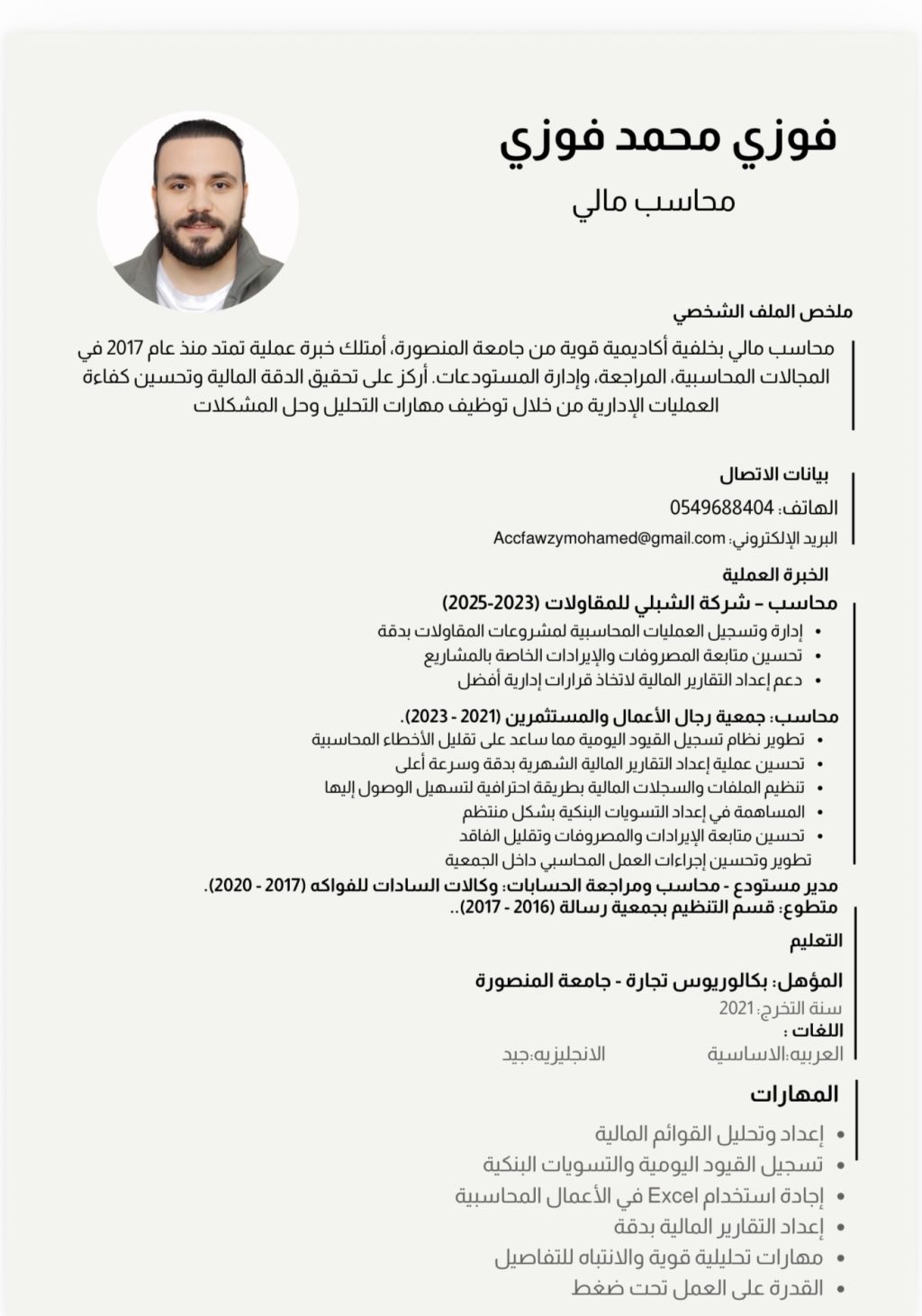 ابحث عن عمل كمحاسب، طموح وأسعى لاكتساب المزيد من الخبرات وتطوير نفسي، وأطمح لفرصة حقيقية أثبت فيها قدراتي وأكون عنصر فعال داخل فريق العمل