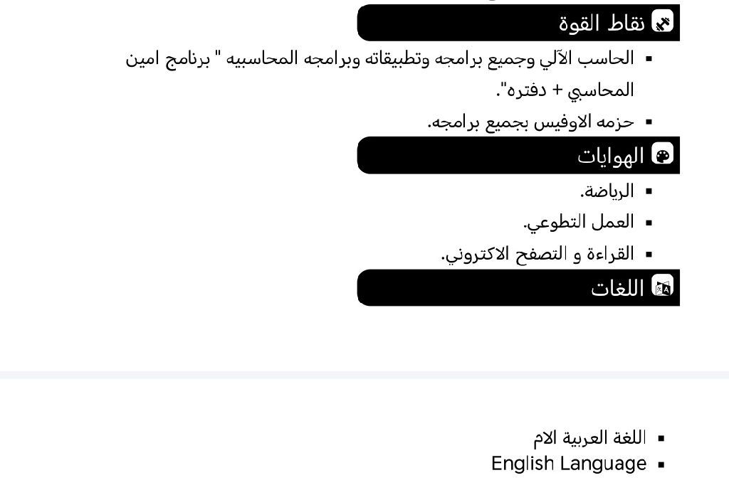 العمل الذي يتناسب مع مهاراتي الشخصية والتطبيقية والابداع فيها. والتي اؤديها بكامل وجهة بالاضافة الى الشؤون المحاسبية والتقنية والادارية بالاضافة الى شؤون الموظفين