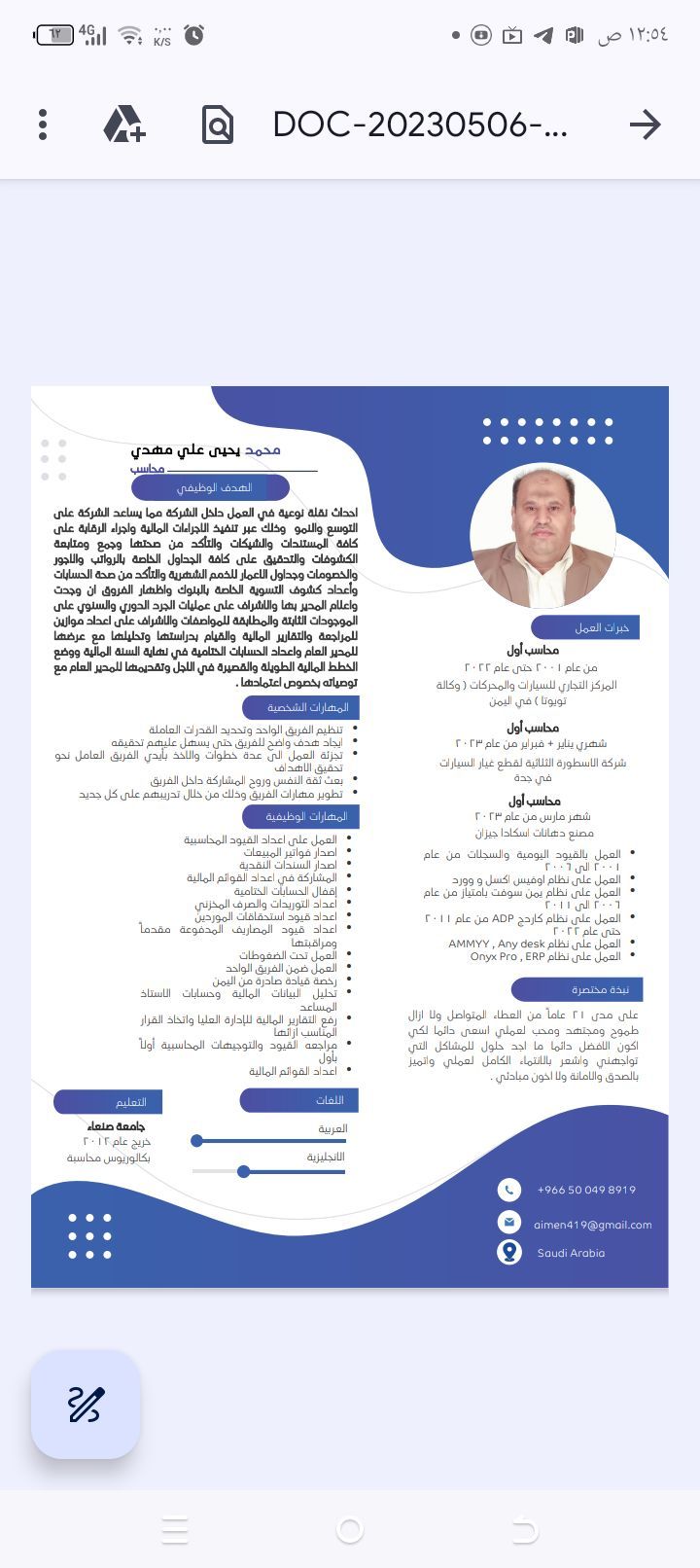 خبرة مجال 20 سنة خريج بكالوريوس العمر 40 سنة سبق واشتغلت في بأذرعه للسيارات وفي مراكز ومولات ومطاعم السيرة الذاتية في الخلفيه