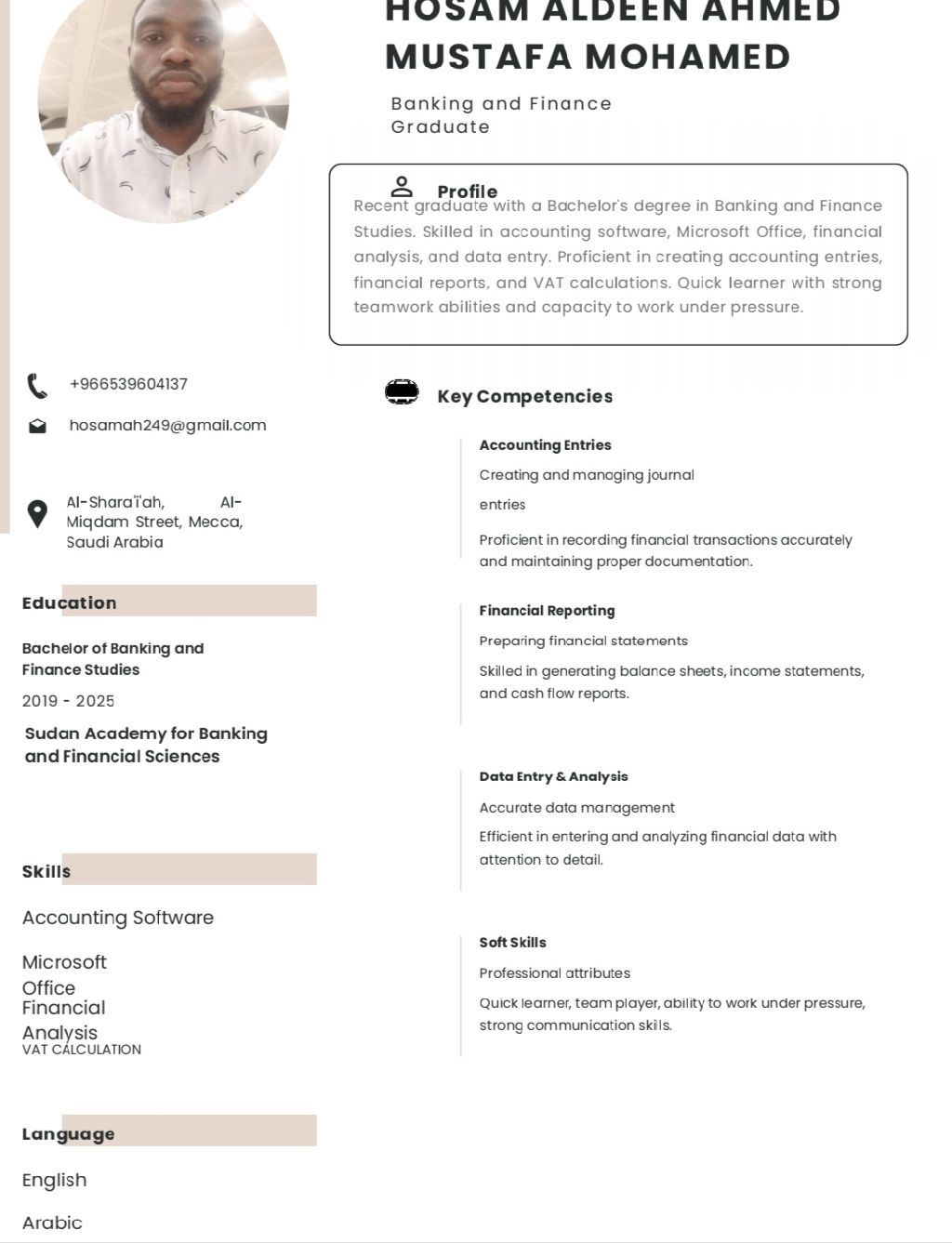 سوداني ابحث عن وظيفة في المجال المالي