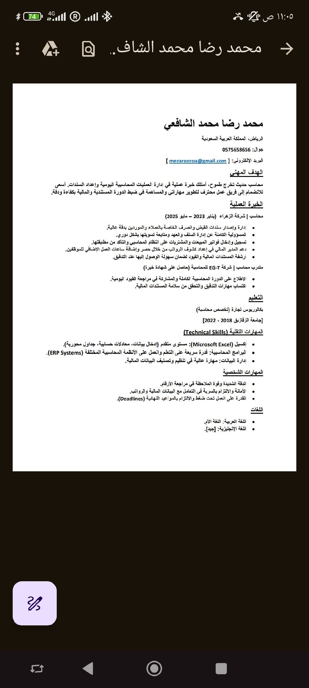 محاسب حديث التخرج ذو خبرة في أقفال القيود اليوميه وقيود العملاء والموردين
