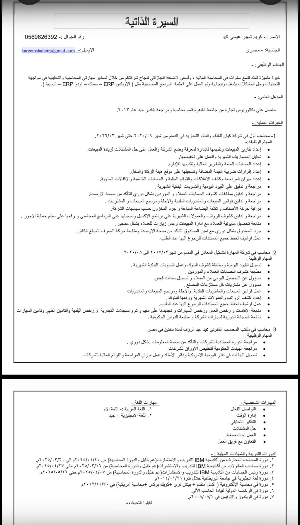 محاسب أول امتلك خبرة أكثر من 8 سنوات في المحاسبة والمراجعة المالية واعداد القيود اليومية وتسويات البنكية واعداد القوائم المالية والتقارير الشهرية والسنوية والتعامل مع البرامج الى وال Excel باحتراف وعمل اقرارات ضريبة القيمة المضافة والزكاة والقدرة على العمل تحت ضغط والالتزام بالمواعيد حيث أسعى الحصول على فرصة وظيفية في بيئة احترافية تتيح لي تطوير مهارتي والمساهمة في تحقيق أهداف الشركة