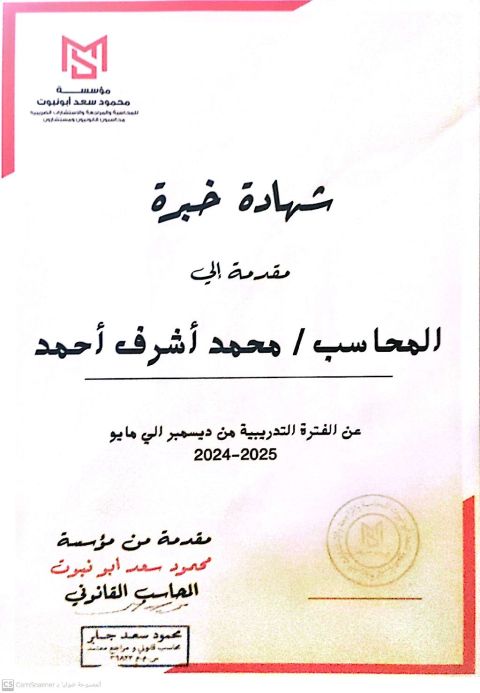 رئيس حسابات خبرة 10 سنوات بشركات المقاولات والتطوير العقاري والشركات التجارية وخبرة بالاقرارات الضريبية والاسترداد الضريبي خبرة بالمنصات الحكومية خبرة بادارة المشاريع وتسعيرها حاصل علي بكالوريوس شعبة محاسبة شهادة CMA PART 1 وMINI MBA وPMP خبرة في اعداد التقارير والقوائم المالية خبرة بالأعمال الادارية وكل ما يخص قسم الموارد البشرية