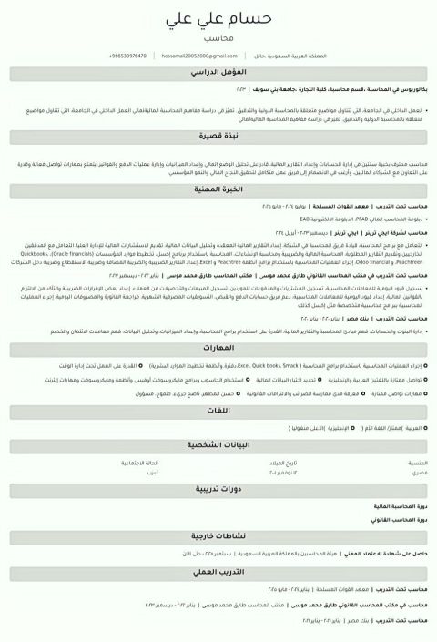 محاسب خبرة 9 سنوات عملت بأكثر من مجال القطاع الطبي والمقاولات وقطع غيار السيارات وأكسسوارات الجولات والمواد الغذائية والتتبع ومجال الادوية