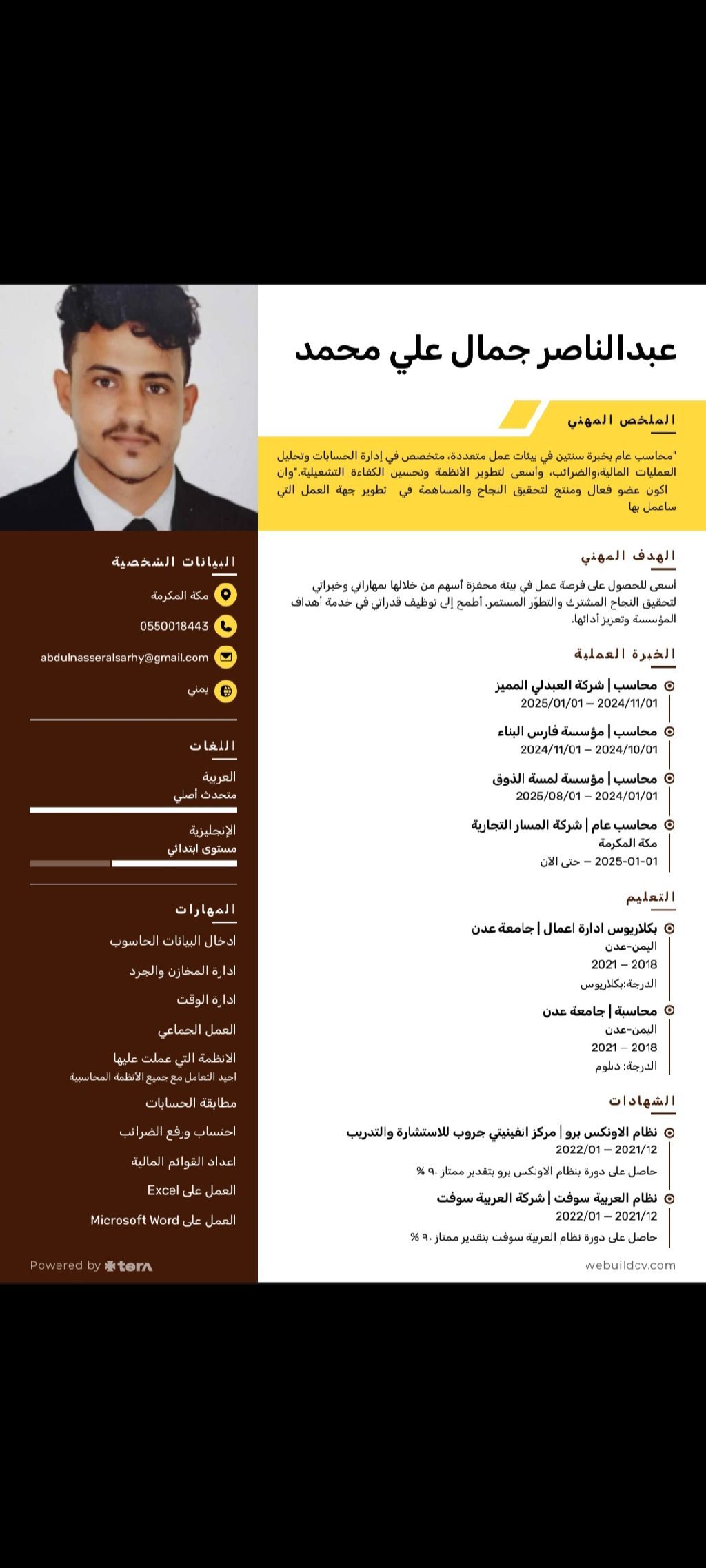 أنا محاسب عام من اليمن ابحث عن عمل المهارات اعداد القيود اليوميه وادخال البيانات ومطابقه الحسابات واعداد ورفع الضرائب وادارة المخازن والجرد واعداد القوائم الماليه والعمل تحت أي ضغوط العمل