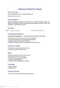 محاسب خبرة 3 سنوات إقامة سارية اعمل علي البرامج المحاسبية واعمل علي برنامج الور والاكسل