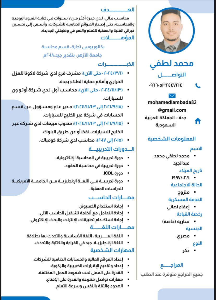 محاسب مالي (مصري) خبرة 6 سنوات في المملكة ابحث عن عمل بدوام جزئي - خبرة في اعداد الدورة المستندية والتقارير المالية ومراقبة ومطابقة المخزون ومطابقة حسابات البنوك والعملاء ورفع الاقرارات الضريبية والزكوية - خبرة في برامج ERP SYSTEM