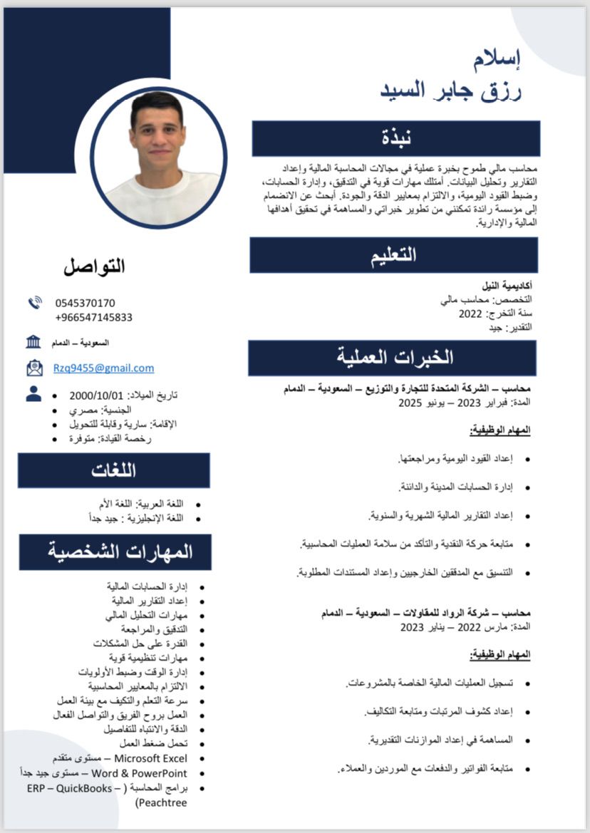 محاسب مالي خبرة 3 سنوات في إدارة الحسابات واعداد التقارير المالية وفقا للمعايير الدوليه