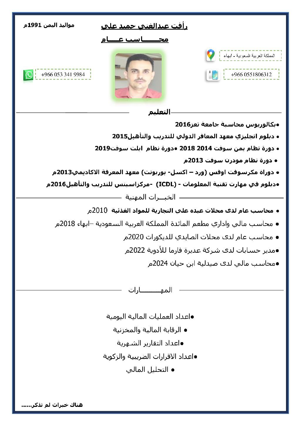 ابحث عن فرصة عمل حسابات لدي خبرة 8 سنوات الالمام بالحسابات بشكل عام على أي نظام محاسبي يمني الجنسية