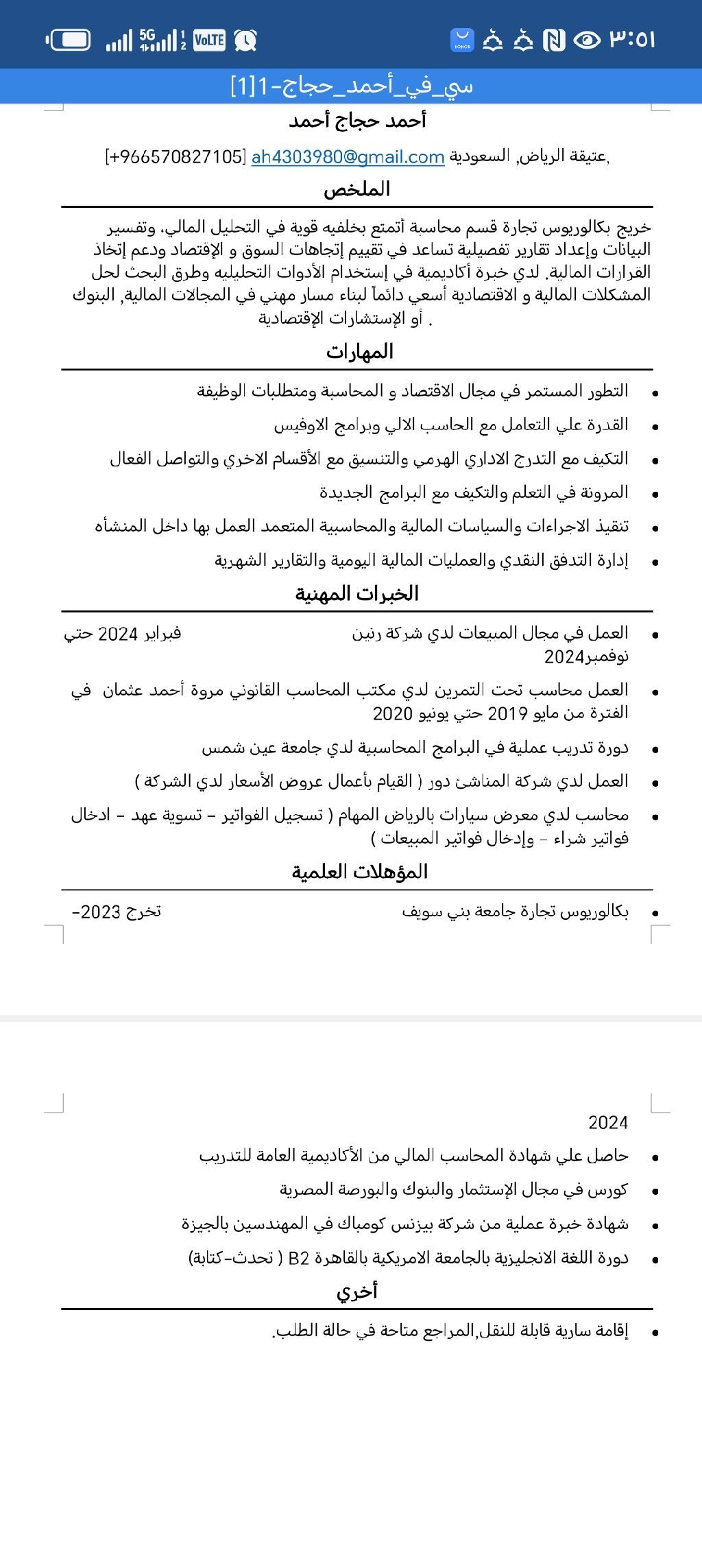 محاسب حديث التخرج، سنة خبرة في محاسبة التكاليف والمبيعات، اجادة برامج الأوفيس، وبرامج ERP, رفع الاقرار الضريبي، حساب المصروفات والايرادات وجرد المخزون، اجادة اللغة الانجليزية، متفرغ للعمل مع إقامة سارية