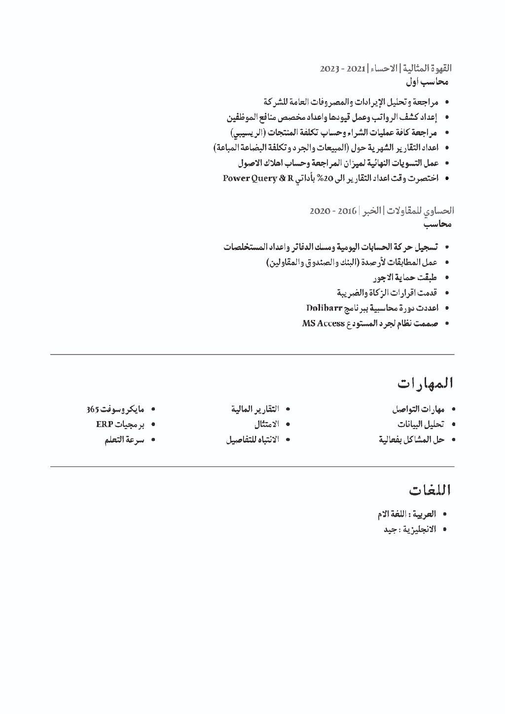 رئيس حسابات خبرة 10 سنوات وحاصل على IFRS, cma ودورتين تحليل بيانات ابحث عن فرصة عمل محاسب أول أو رئيس حسابات متاح لنقل الكفالة والانتقال لأي مدينة بالمملكة