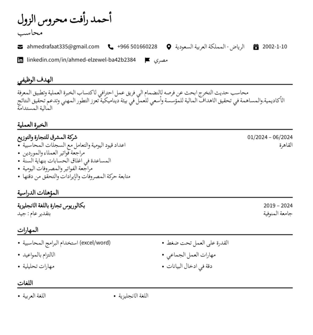 محاسب حديث التخرج ابحث عن فرصة عمل في مجال المحاسبة أقدر أطور فيها من مهاراتي. عندي معرفة جيده بالبرامج المحاسبية (excel / word) موجود في الرياض. معيا إقامة سنة متاح لنقل الكفالة. ورخصة سارية