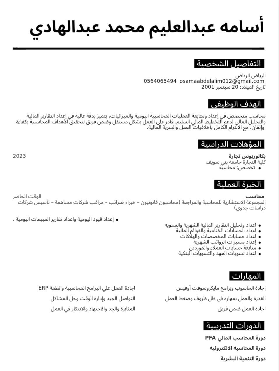 محاسب مصري خريج كلية التجارة متواجد في الرياض، ابحث عن فرصة عمل دوام كامل. أقامه سارية وقابلة للنقل لدي خبرة في استخدام برامج المحاسبة مثل Excel وERP، واعداد القيود الماليه والتقارير اليوميه