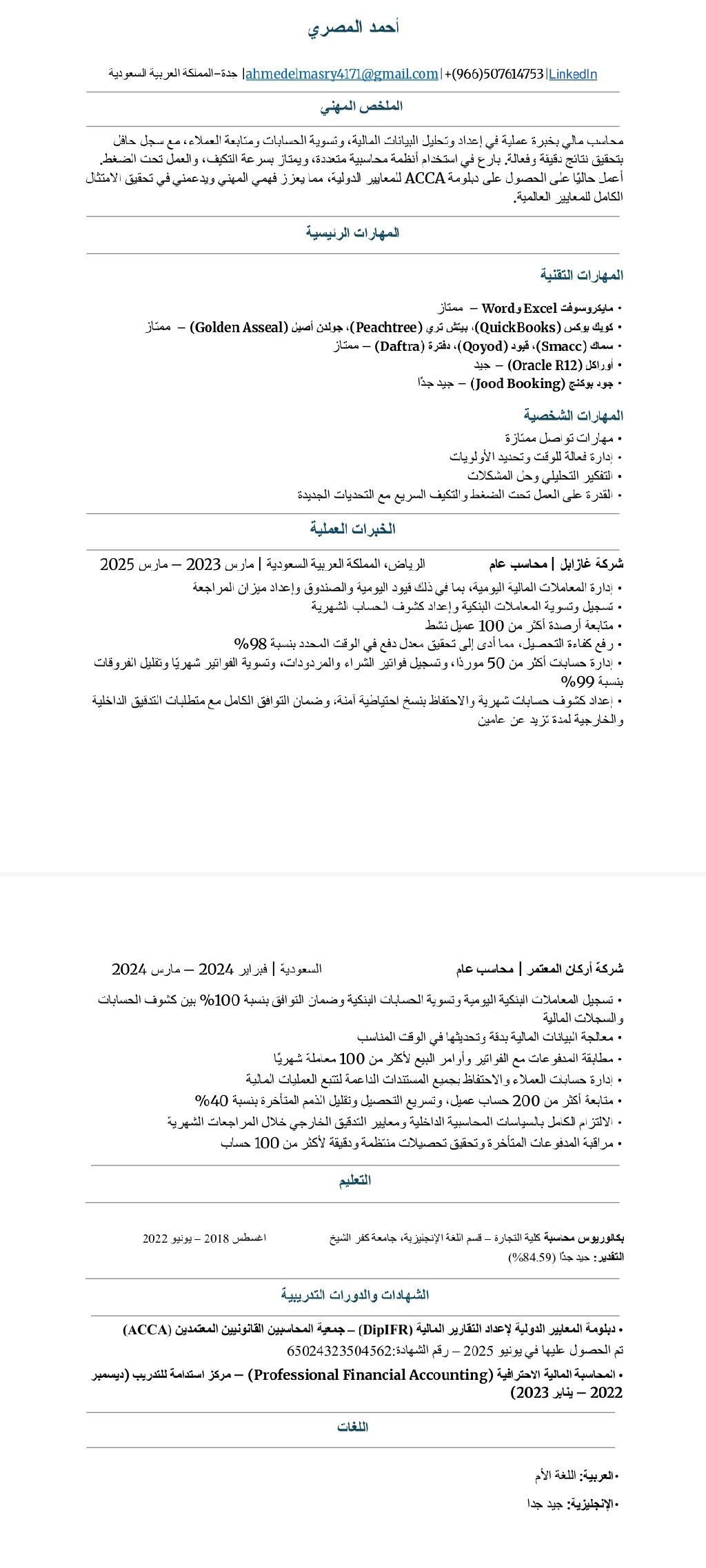 I am Ahmed Elmasry, a commerce graduate (English Section - Accounting Department) from Kafr El - Sheikh University, class of 2022, with a Very Good overall grade. I hold a Diploma in International Financial Reporting (DipIFR) from the Association of Chartered Certified Accountants (ACCA) With three years of experience as a General Accountant at gasable