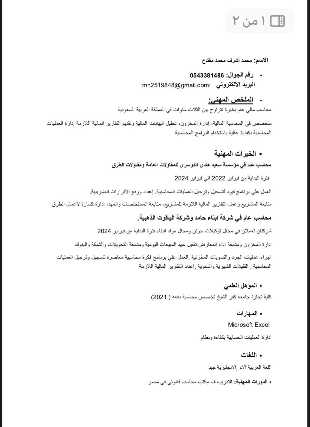 أنا محاسب مصري العمر 26 عام خبرات ثلاث سنوات داخل المملكة العربية السعودية خبرات ممتازة في المحاسبة المالية واعداد التقارير المالية ورفع ضريبة القيمة المضافة وكافة الأعمال المحاسبية ابحث عن وظيفة