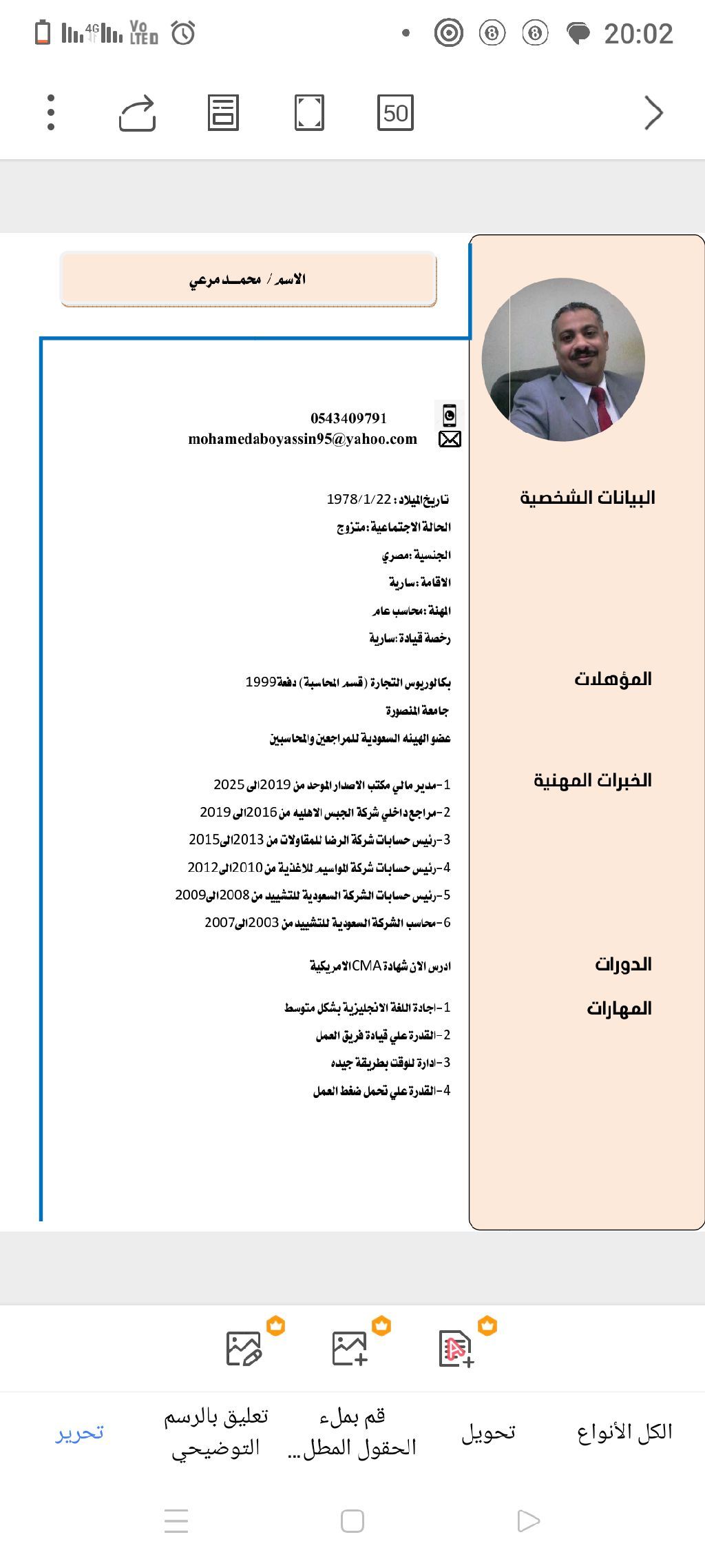 محاسب مصري خبرة ممتدة لأكثر من عشرون عاما في مجال المحاسبه وادارة الحسابات عضو في socpa وأدرس الآن شهادة CMA