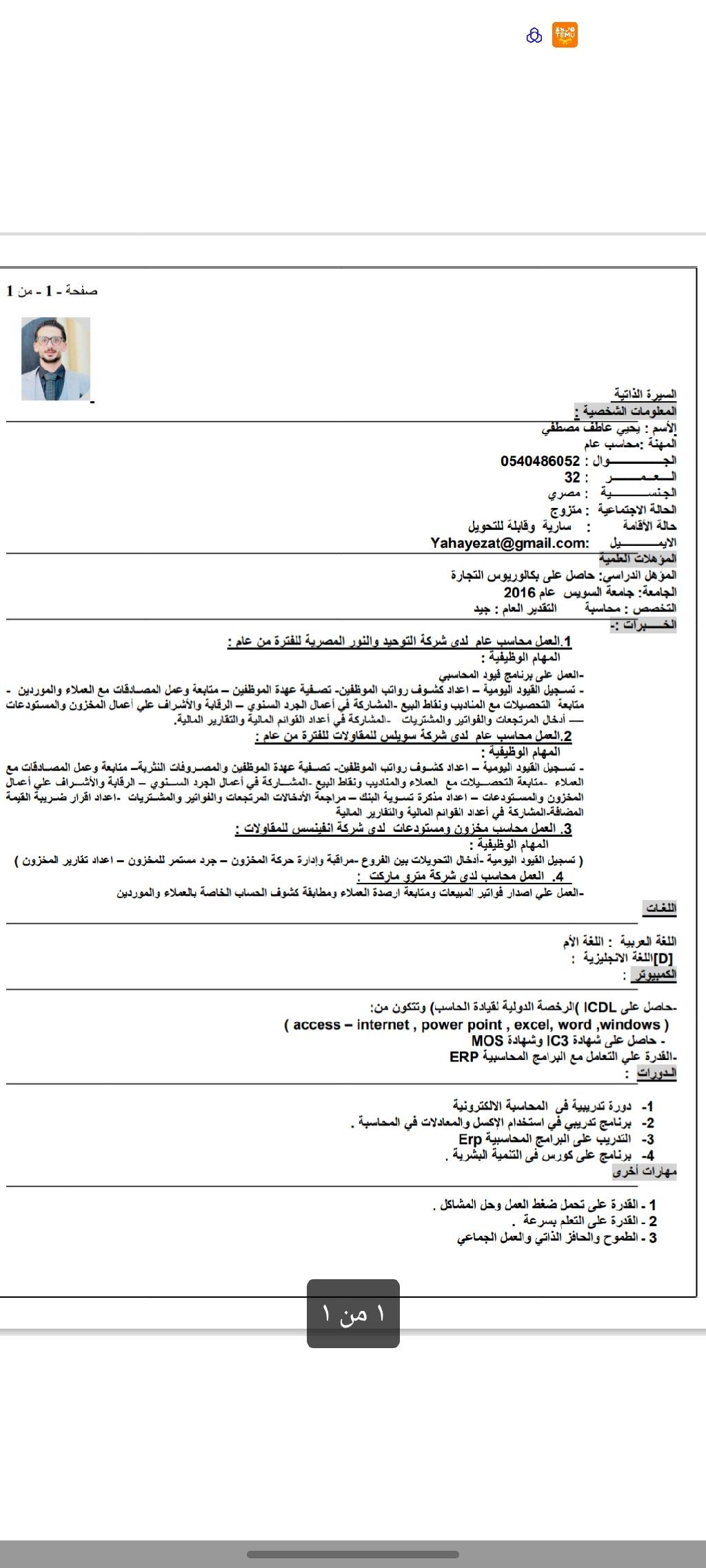 محاسب مقيم في الرياض خبرة 5 سنوات في مجال نقاط البيع