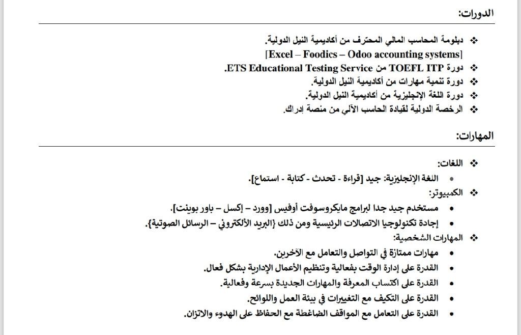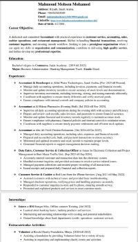 Name Mahmoud Mohsen Mohamed Bahaa El - Din, Age 25, Bachelor of commerce, Egyptian nationality, residing in Riyadh. Seeking employment in the following fields Accountant, Banking, Data Entry, Administration, Human Resources, Warehouse Keeper) Accountant with more experience I have two and a half years of experience in Egypt in the medical and restaurant sectors, working with ERP systems like Odoo