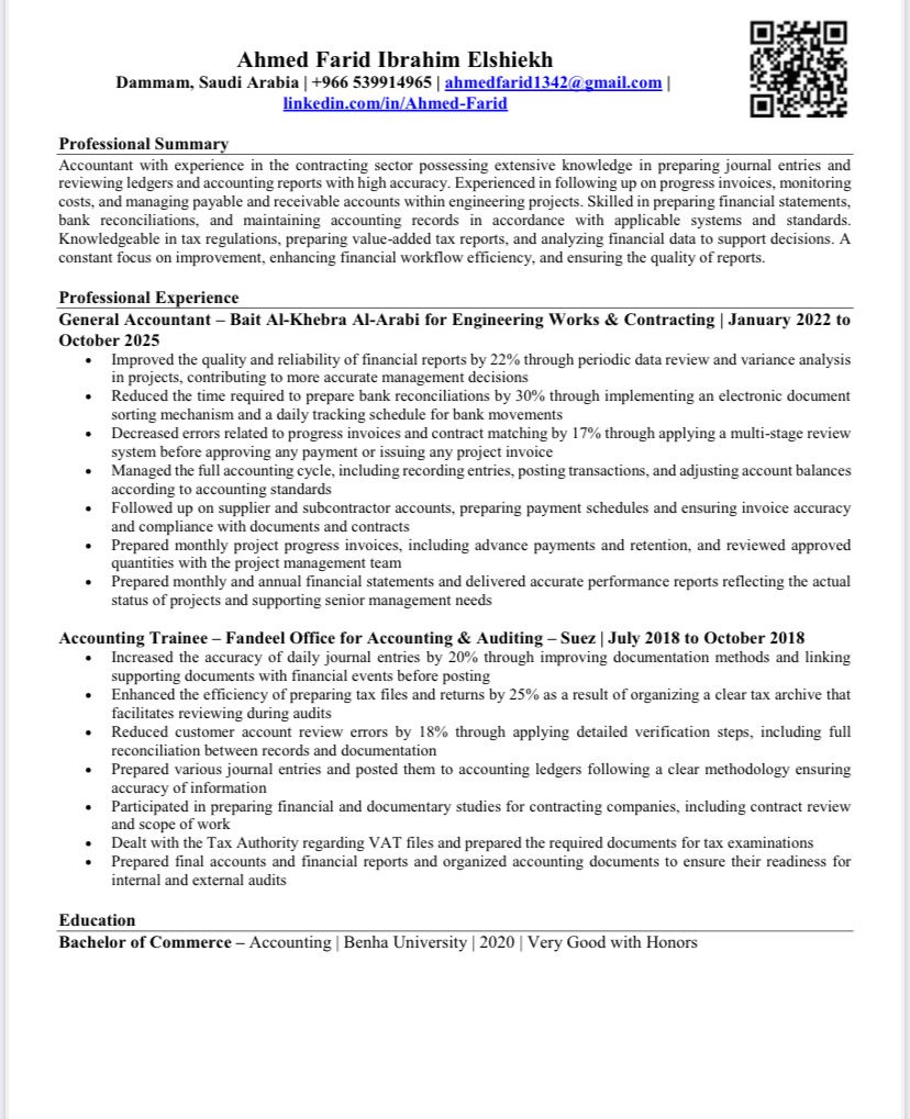 ابحث عن وظيفة أنا محاسب عام خبرة 4 سنوات في المحاسبة داخل شركات المقاولات متواجد في السعودية الإقامة سارية لمدة سنة تأشيرة محاسب جاهز للانضمام فورا