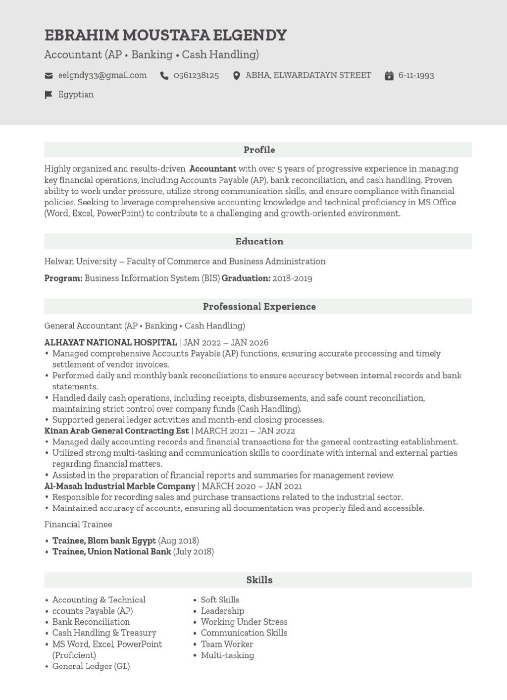 Accountant with 5 + years of experience in Accounts Payable, bank reconciliation, and cash handling. Skilled in accuracy, working under pressure, and preparing financial reports. Strong communication abilities and proficiency in MS Office. Seeking to contribute expertise in a professional, growth - oriented environment