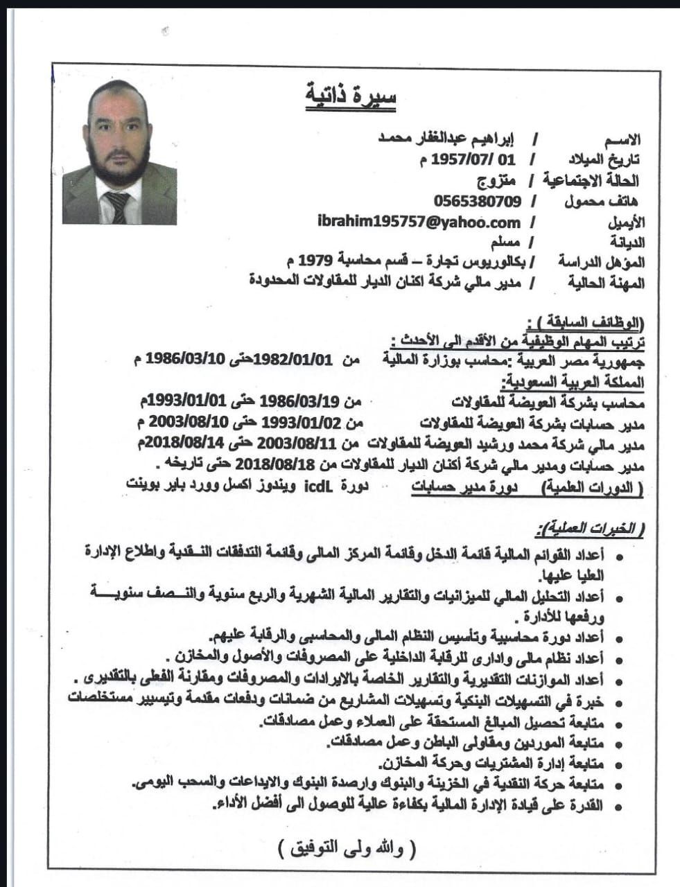 عملت محاسب 10 سنوات و10 سنوات مدير حسابات ومدير مالي 8 سنوات