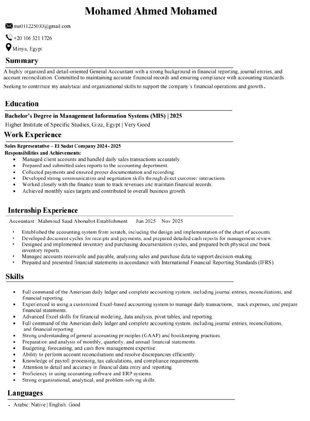 محاسب خبرة بدور علي وظيفة في السعودية أنا حاليا في مصر ومحتاج أسافر ولو براتب بسيط بتعلم أي حاجة بسرعة جدا وجاهز لأي اختبار في المحاسبه كل الى طالبوا أن الا قي شغل ولو الراتب بسيط