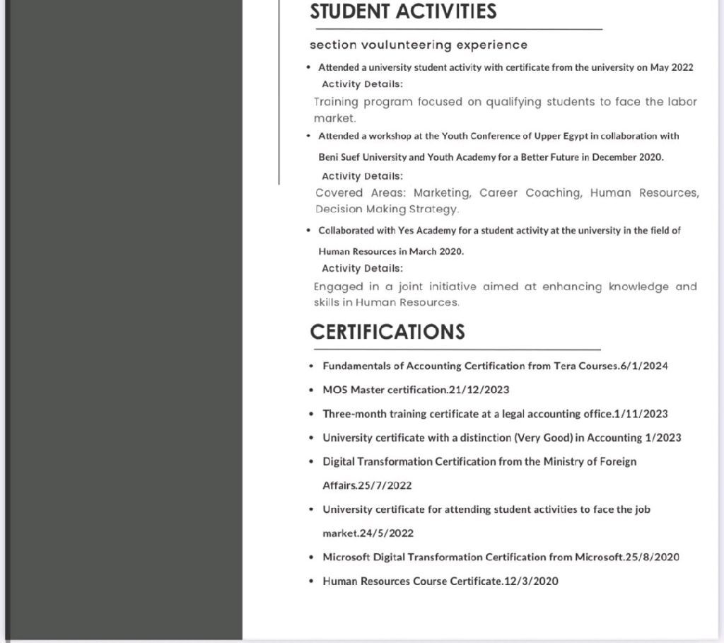 Job Title Accountant I have one and a half years of experience in the Kingdom of Saudi Arabia across three (family - owned) companies a trading company, a logistics services company, and a contracting company. I am currently seeking a new challenge as an Accountant within the Kingdom of Saudi Arabia, and I would be grateful to anyone who can provide me with an opportunity