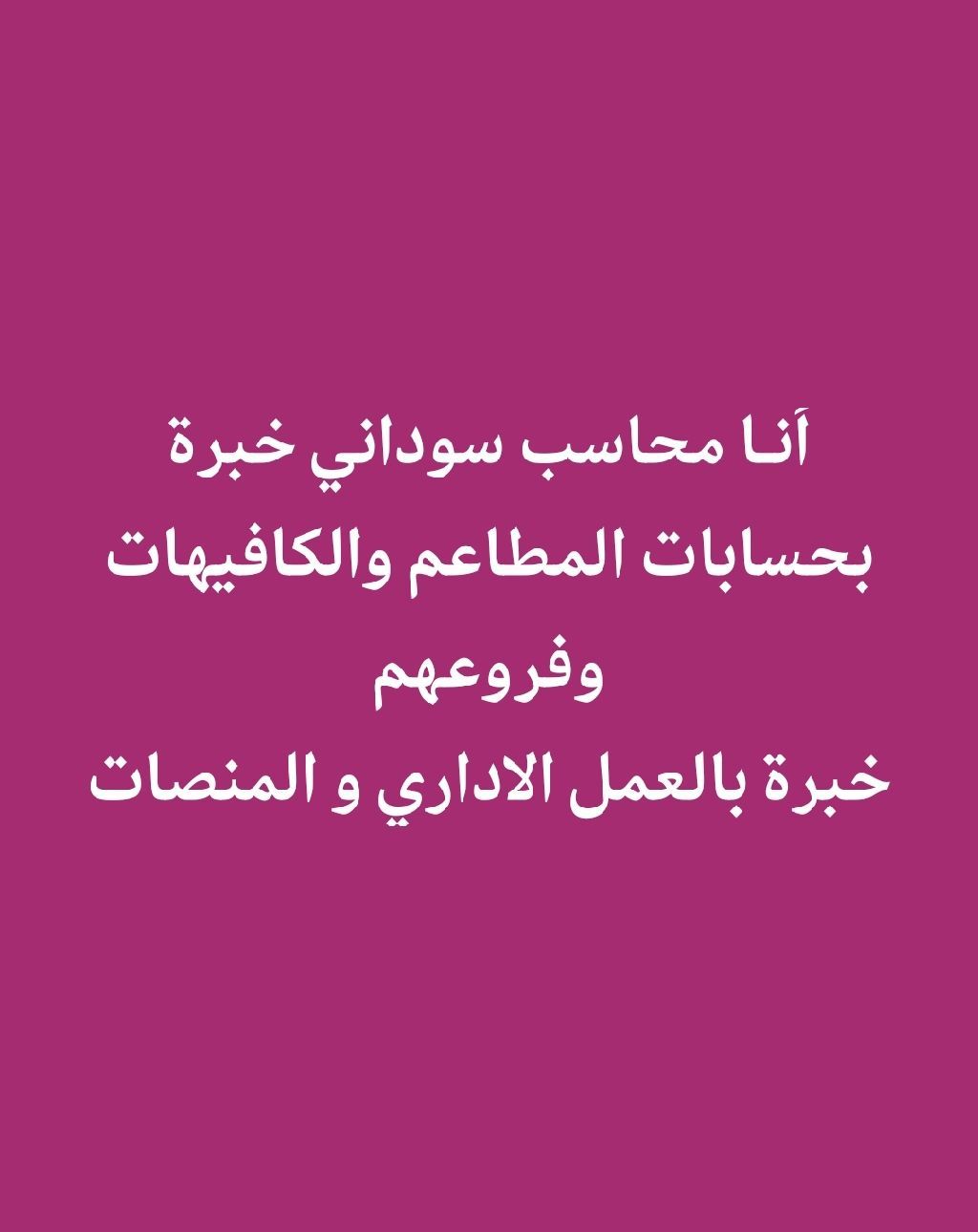 A Sudanese Accountant big experience in restaurants and it branches and hotels and brand Coffee and it branches