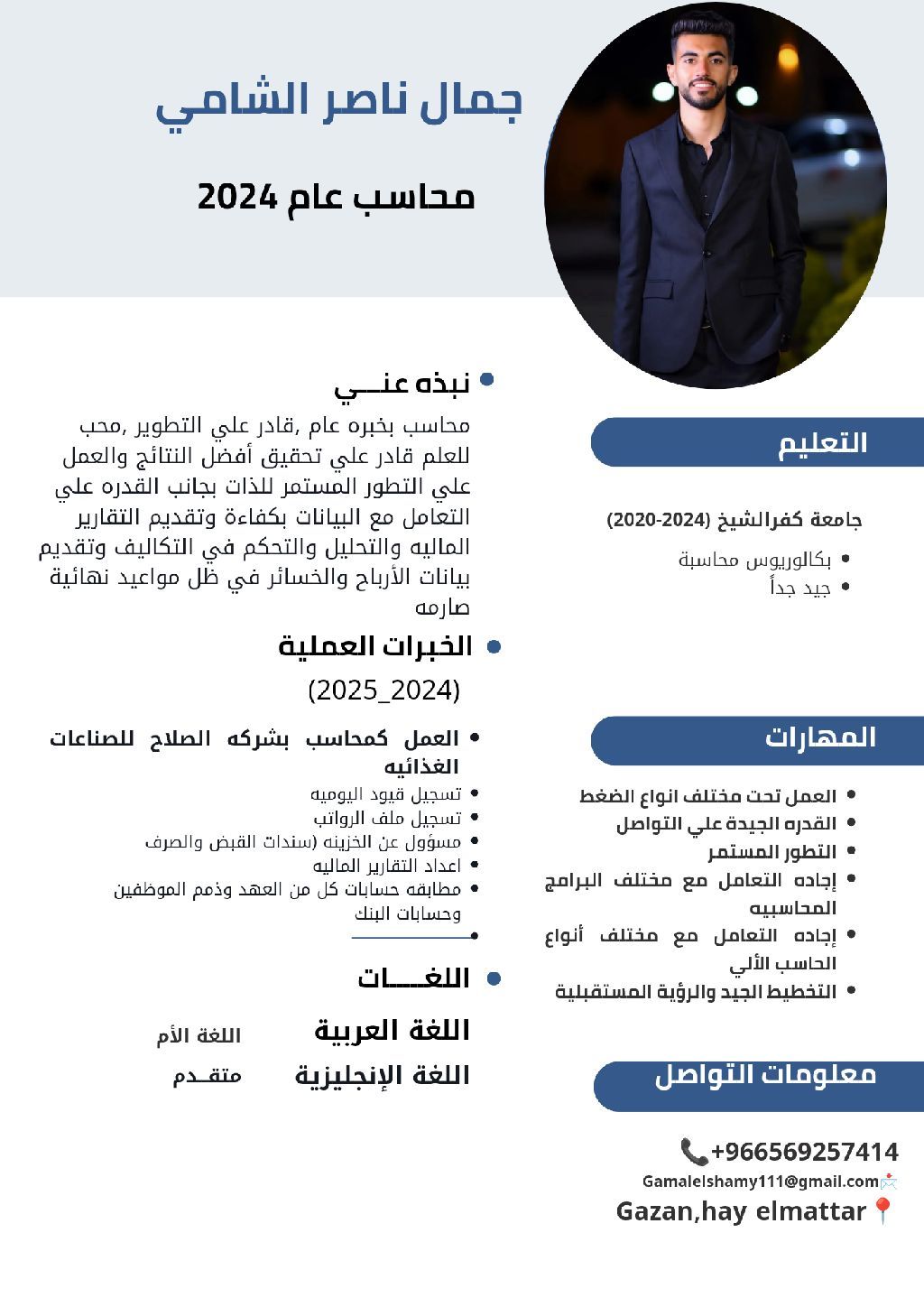 محاسب مصري حاصل على بكالوريوس تجارة شعبة محاسبة عام 2024 ابحث عن شاغر وظيفي في مجال المحاسبة ولدي القدرات والخبرات الكافية لاثبات كفائتي متواجد داخل المملكة وجاهز للعمل فورا ولا توجد أي معوقات لدى للعمل بأي مكان داخل المملكة واقامتي سارية ولدي رخصة قيادة