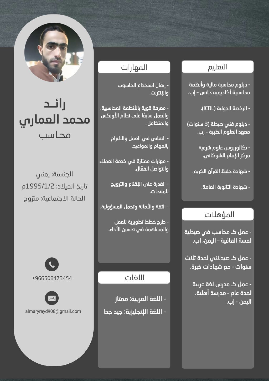 ابحث عن عمل محاسب أو كاشير أو مدهل بيانات، صيدلاني، تفاصيل السيرة ذاتية كاملة في الصورة