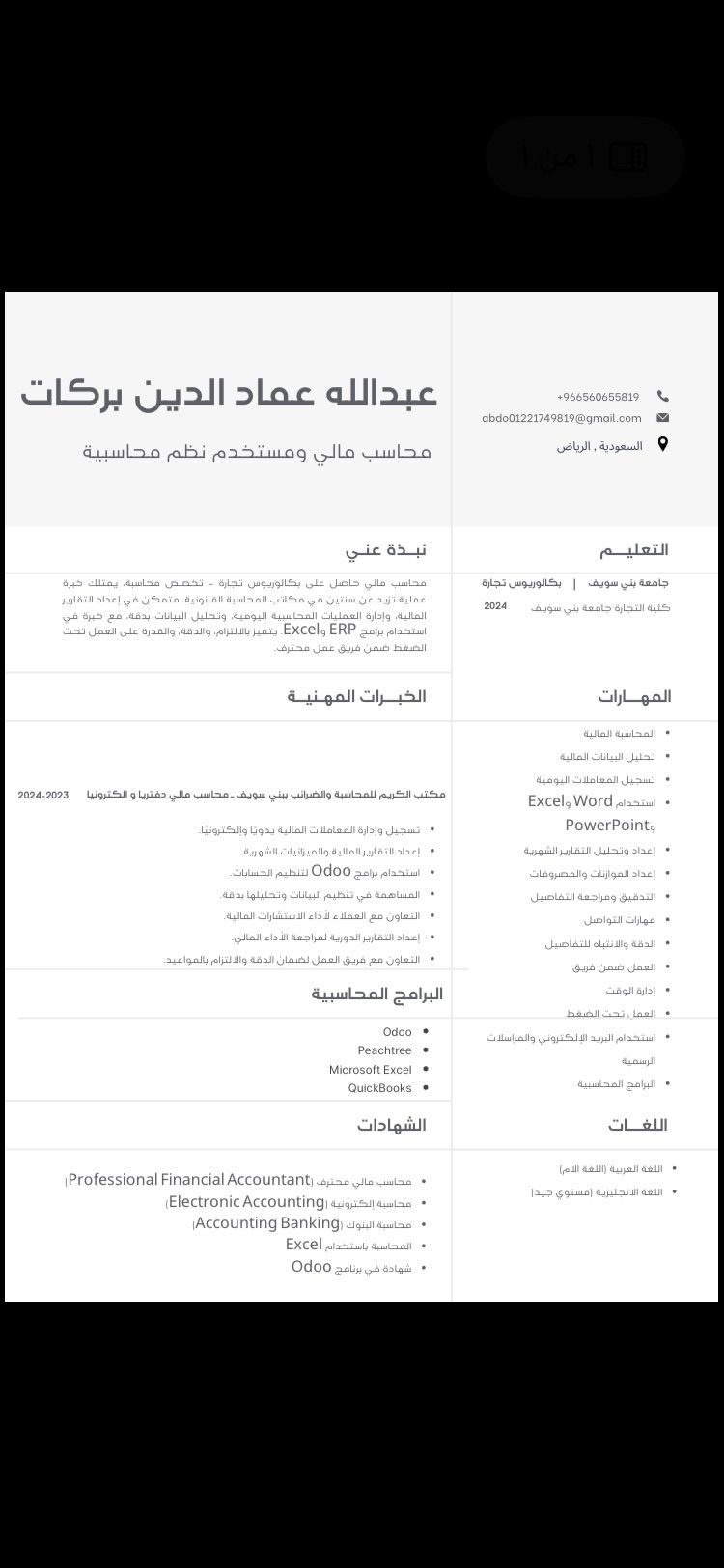 محاسب مالي حاصل على بكالوريوس تجارة تخصص محاسبة، يمتلك خبرة عملية تزيد عن سنتين في مكاتب المحاسبة القانونية. متمكن في اعداد التقارير المالية وإدارة العمليات المحاسبية اليومية، وتحليل البيانات بدقة مع خبرة في استخدام برامج ERP وExcel. يتميز بالالتزام، والدقة والقدرة على العمل تحت الضغط ضمن فريق عمل محترف مكتب الكريم للمحاسبة والضرائب ببني سويف - محاسب مالي دفتريا والكتروانيا 2023 - 2024
