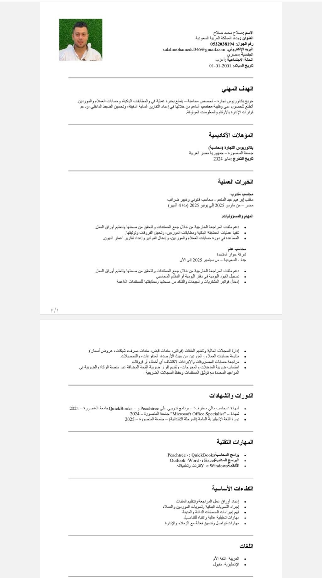 أنا محاسب حديث التخرج إقامة سارية ابحث عن فرصة عمل مناسبة داخل السعودية لدي خبرة 3 شهور في شركة جوار المتحده للمقولات وتشمل مهامي اعداد الاقرار الضريبي اعداد تقرير تكاليف المشروع مراجعة عهده المشاريع اعداد تقرير المشتريات