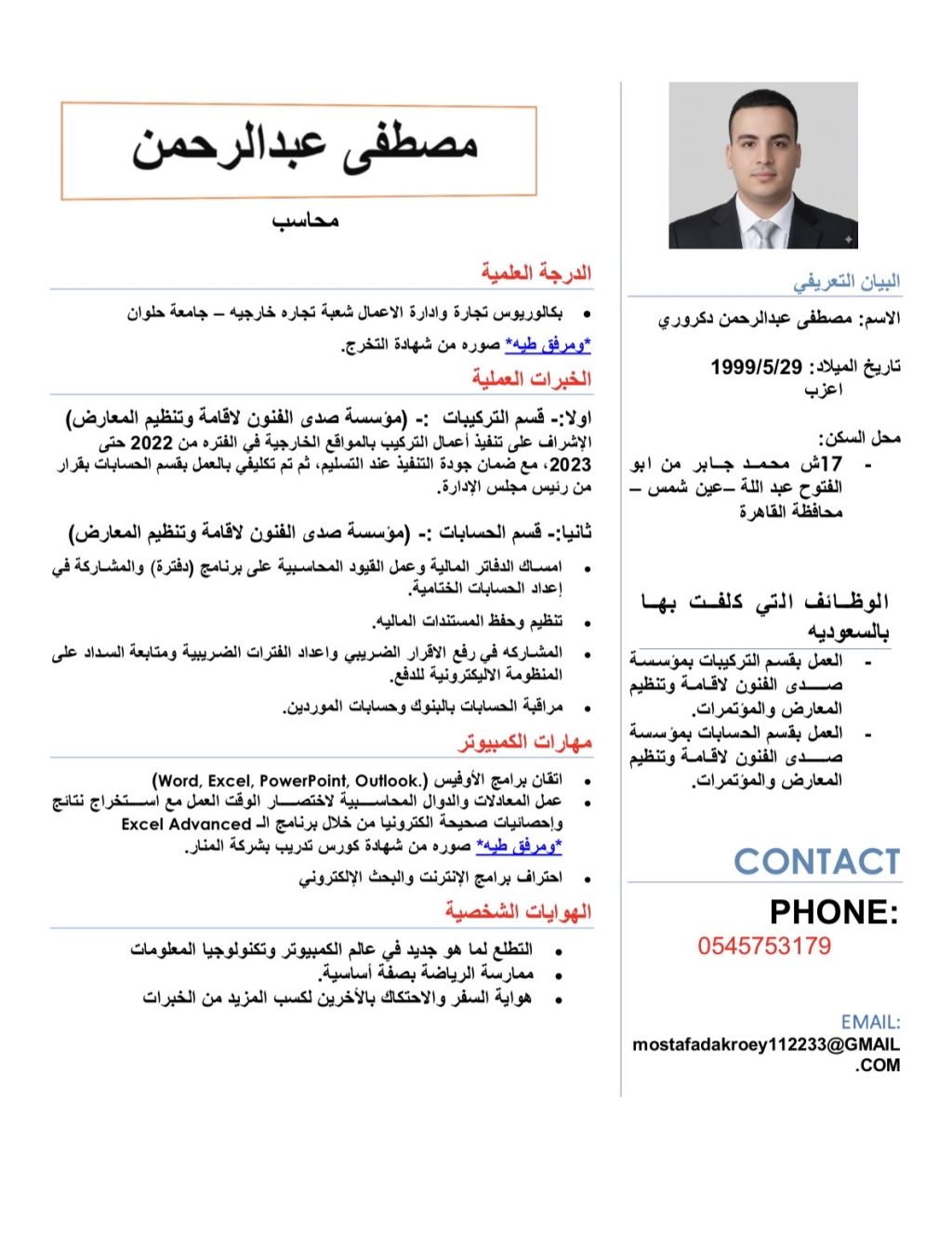 ابحث عن فرصة عمل في مجال الحسابات امتلك خبرة، تشمل ادخال القيود اليومية، متابعة الحسابات البنكية وحسابات الموردين، واصدار كشوف الرواتب والمشاركة في رفع الاقرار الضريبي واعداد الحسابات الختامية والعمل على برامج الأوفيس اكسل ووورد. كما امتلك خبرة في التعامل مع برامج فودكس وقيود ودفترة بالاضافة الى إقامة سارية ورخصة قيادة