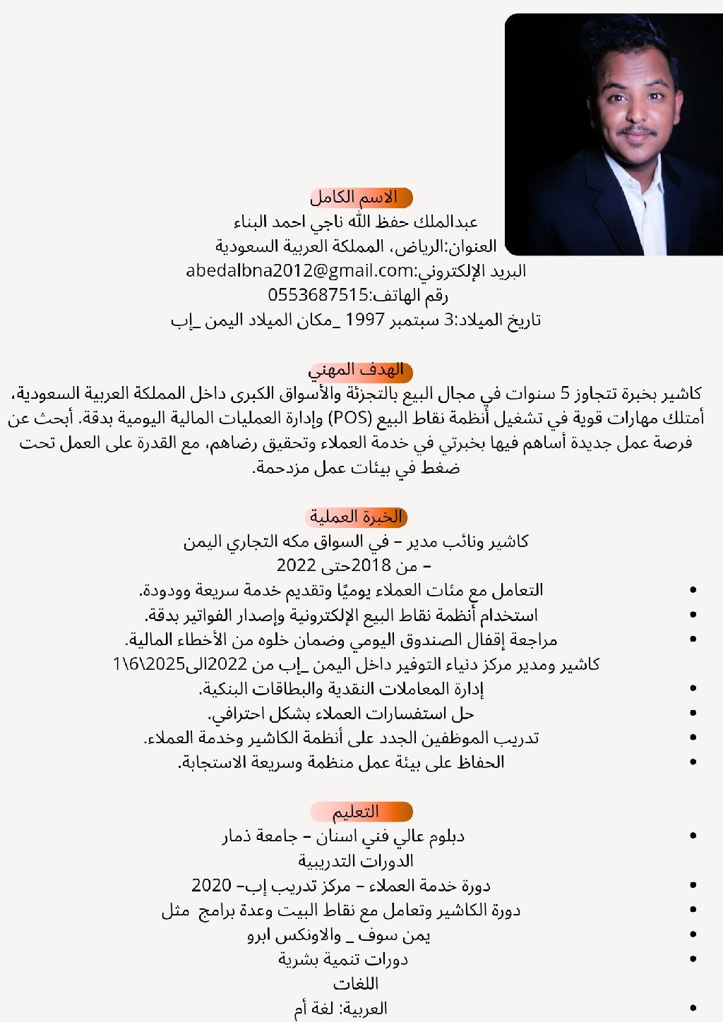 كاشير أو محاسب زبائن أتحمل ضغط العمل
