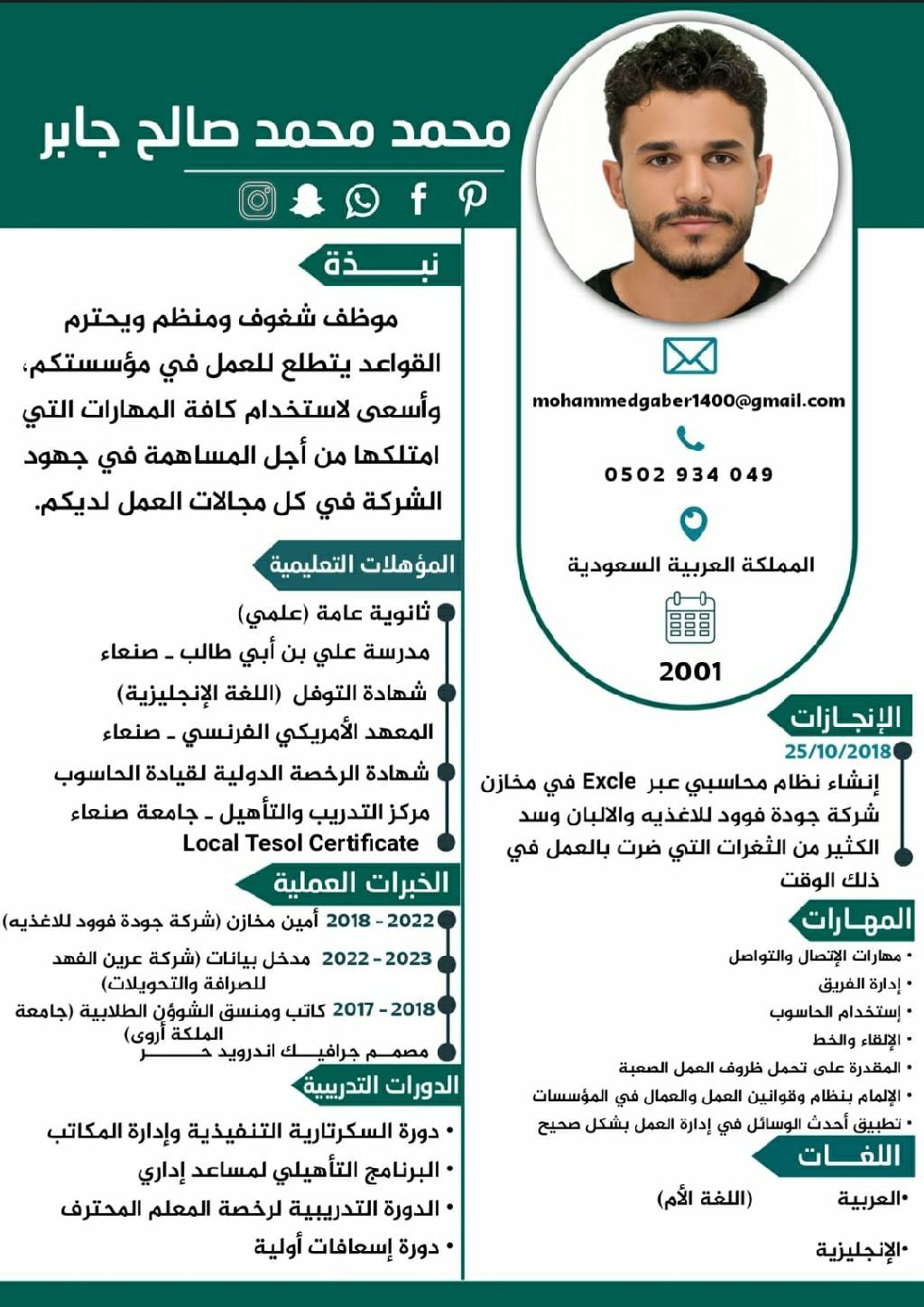 أتطلع لفرصة عمل ك كاشير إقامة سارية وكرت صحي جاهز خبرة في التعامل مع العملاء وإدارة نقاط البيع بدقة وسرعة لأكثر من سنتين أتقن العمل تحت الضغط، ومنضبط في المواعيد، وجاهز للانضمام فورا للتواصل