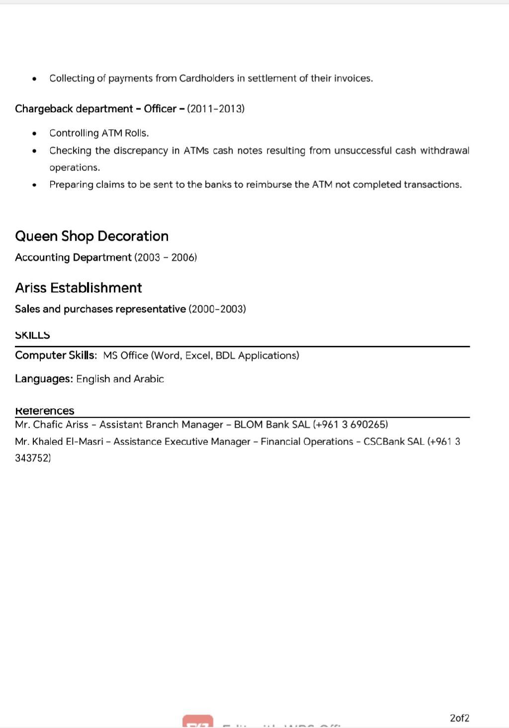 I am Lebanese with 22 years of experience in bank and company accounts, seeking a job opportunity