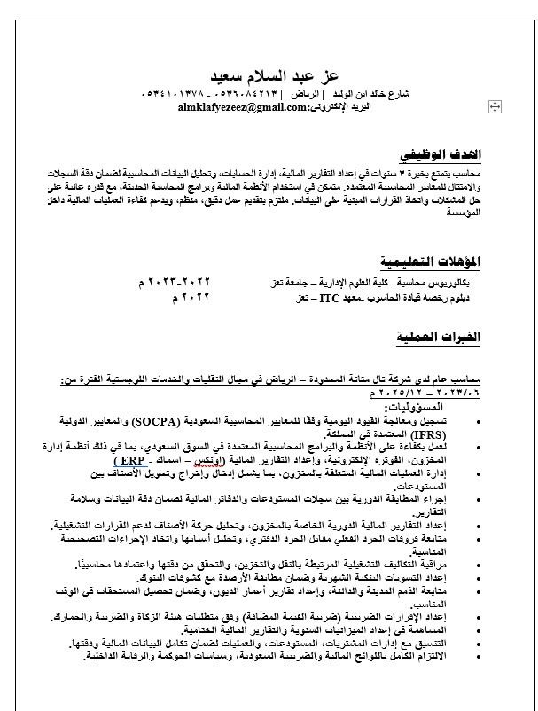 ابحث عن فرصة عمل محاسب خدمات لوجيستية الجنسية يمني خبرة في إدارة العمليات المحاسبية اليومية واعداد التقارير المالية خبرة في إدارة المستودعات واستلام وصرف المواد. تنظيم المخزون واعداد تقارير الجرد الدورية. اجادة استخدام الأنظمة المحاسبية وأنظمة إدارة المخزون (ERP) مهارات في Excel واعداد الجداول والتقارير وقدرة على العمل تحت الضغط. الخبرة 3 سنوات جاهز للعمل فورا قابلية للعمل في أي مدينة في السعودية