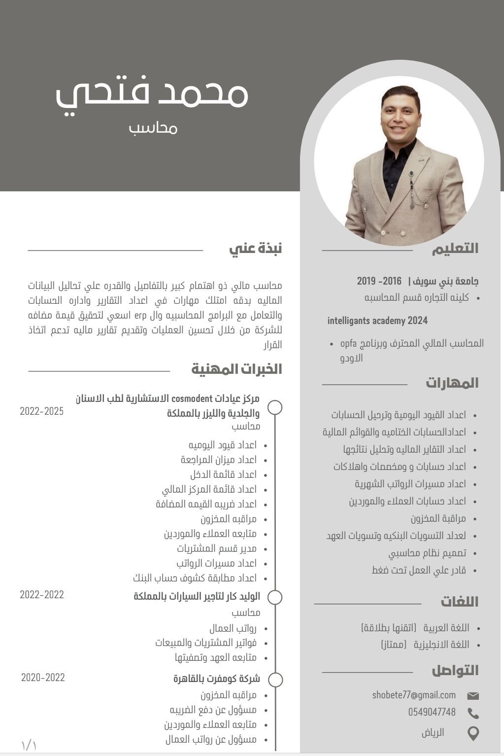محاسب مصري خبرة 6 سنوات لدي القدرة على التعامل مع كافة البرامج المحاسبية وبرامج الأوفيس واعداد التقارير المالية والتسويات البنكية ومسيرات الرواتب ومتابعة العملاء والموردين ومتابعة المخزون وتقارير ضريبة القيمة المضافة ولدي خبرة في المجالات الطبية وفي شركات تأجير السيارات